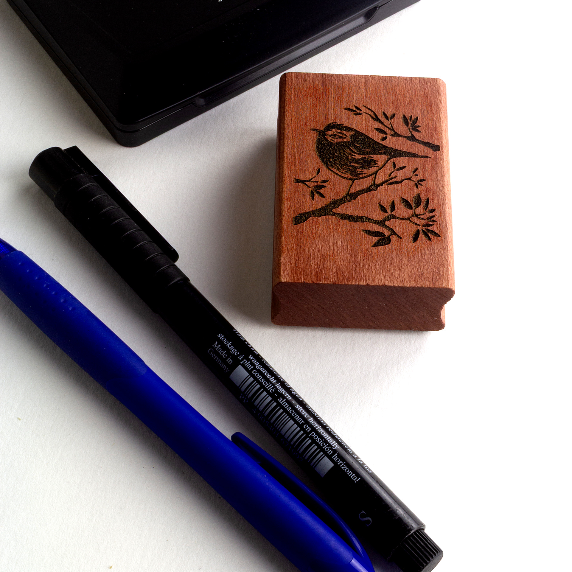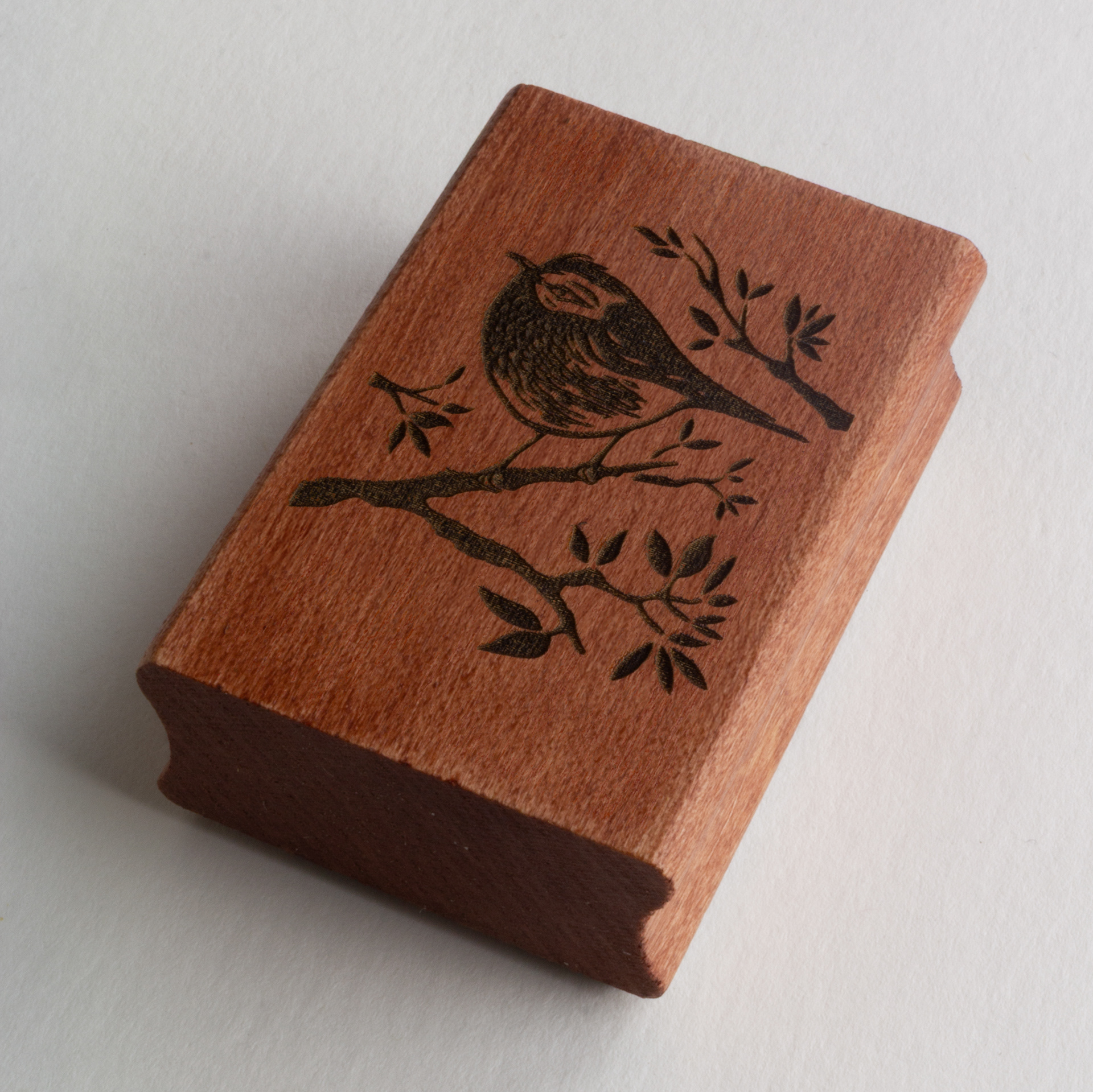 Découvrez le petit tampon "Bird II" (4x6 cm), une pièce unique créée à partir d'une linogravure originale.