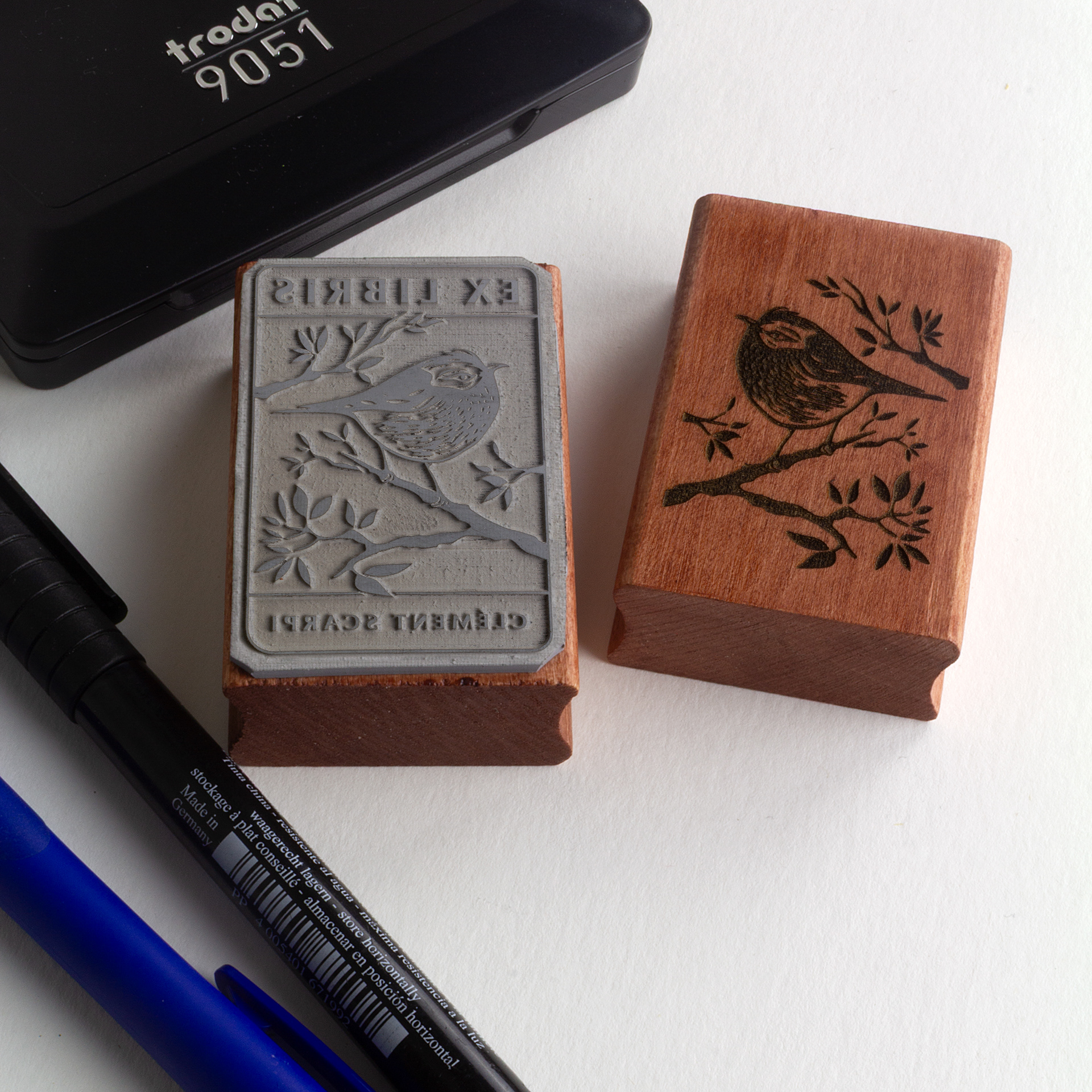 • LINOGRAVURE ORIGINALE : Chaque tampon commence par une linogravure que j'imprime minutieusement.