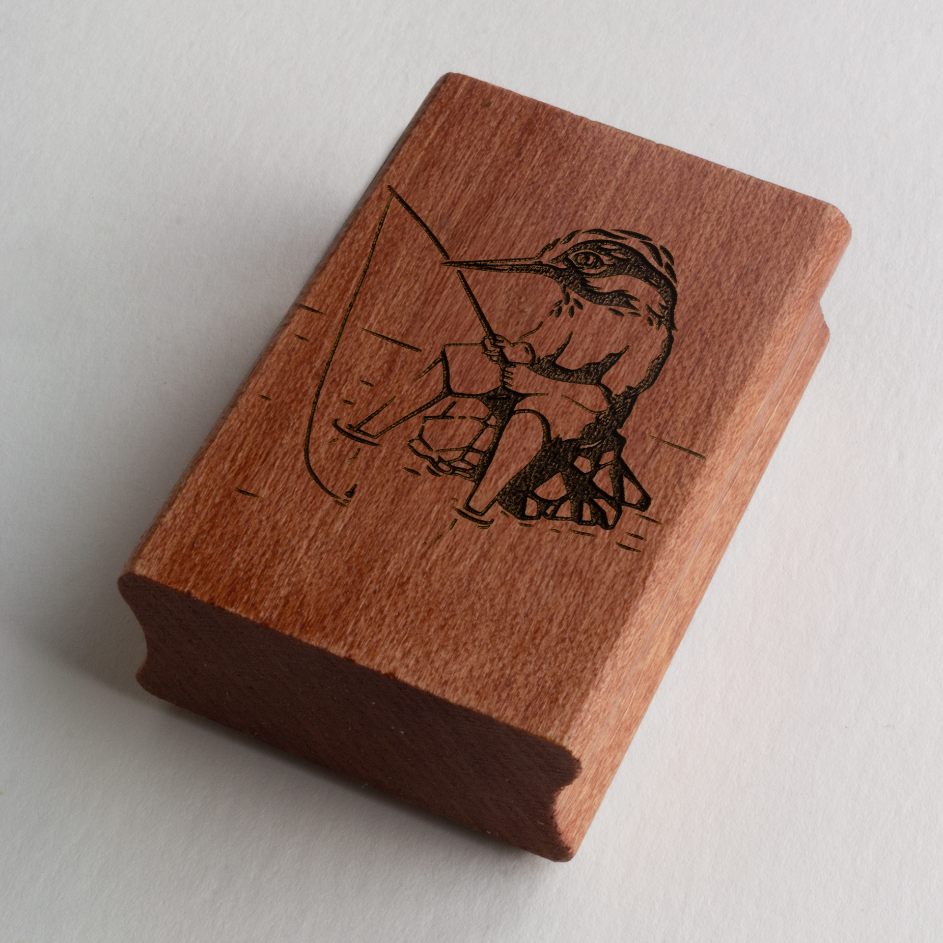 Découvrez le petit tampon "Kingfisher" (4x6 cm), une pièce unique créée à partir d'une linogravure originale.