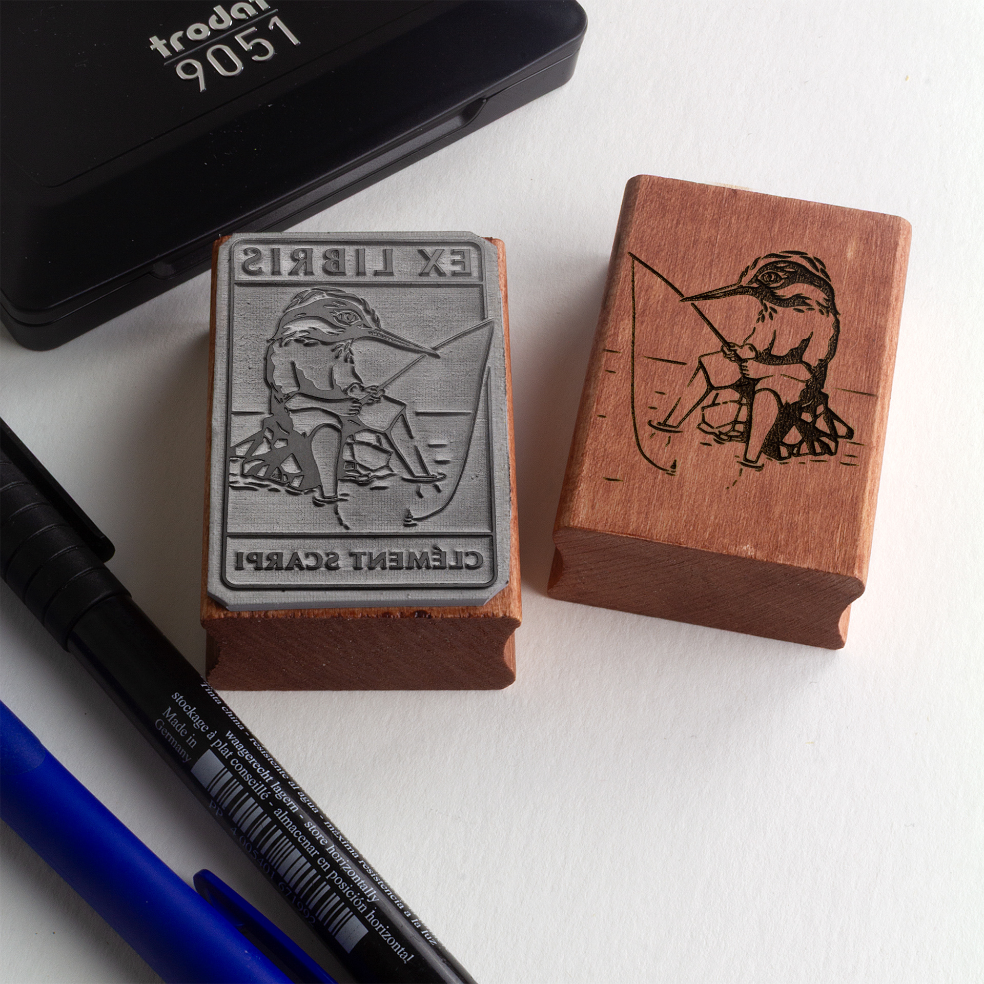 • PRECISE REPRODUCTION: The print is then scanned and accurately reproduced using a laser engraver on a high-quality rubber plate (Trodat Aero+).