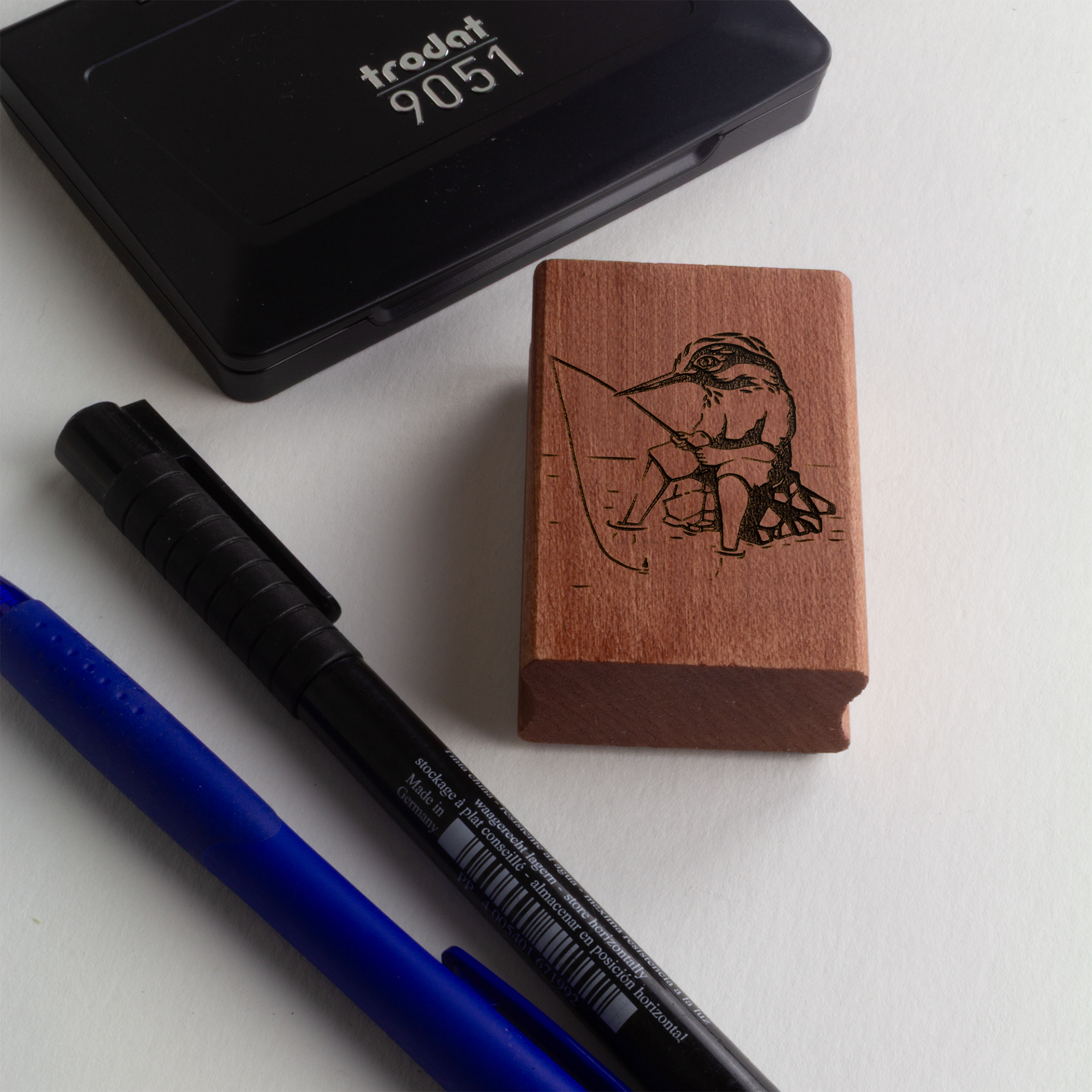 Discover the small “Kingfisher” stamp (4 × 6 cm), a unique piece created from an original linocut.