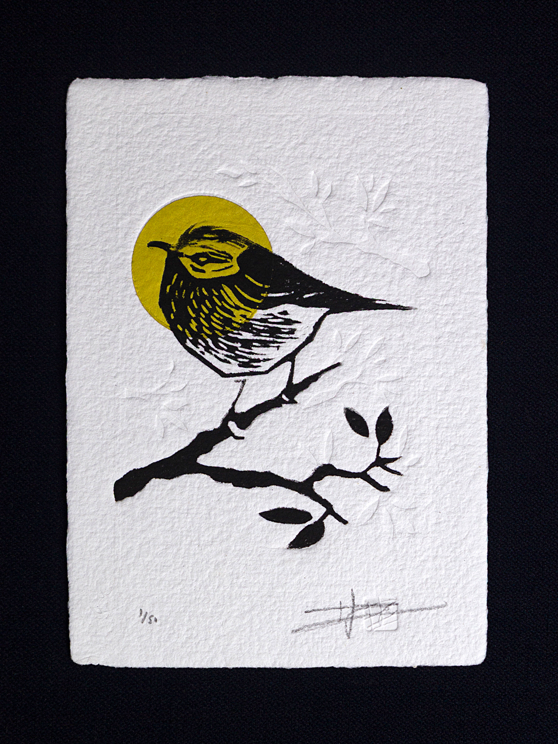 • Estampe beaux arts réalisée sur papier Washi OKAWARA SELECT 51g/m² Naturel Awagami (10 x 15 cm), cette gravure est imprimée à la main sur presse taille douce, avec l'encre Charbonnel Aqua Wash Noir de Carbone.