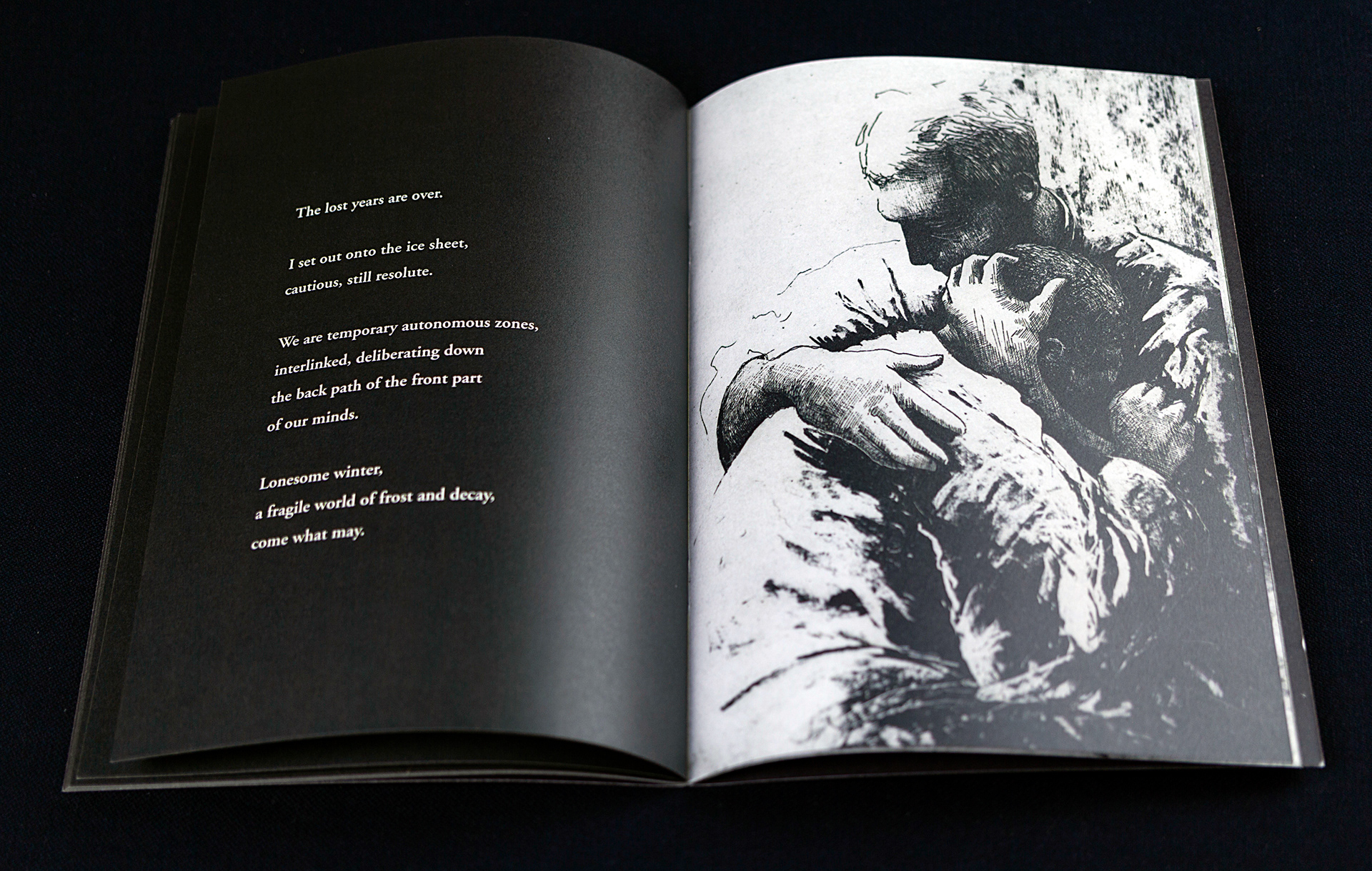 • A 32-page poetry zine (5.9'' x 8.2") composed of a poetic story (by Roma Fluxe) illustrated with 14 original etchings.